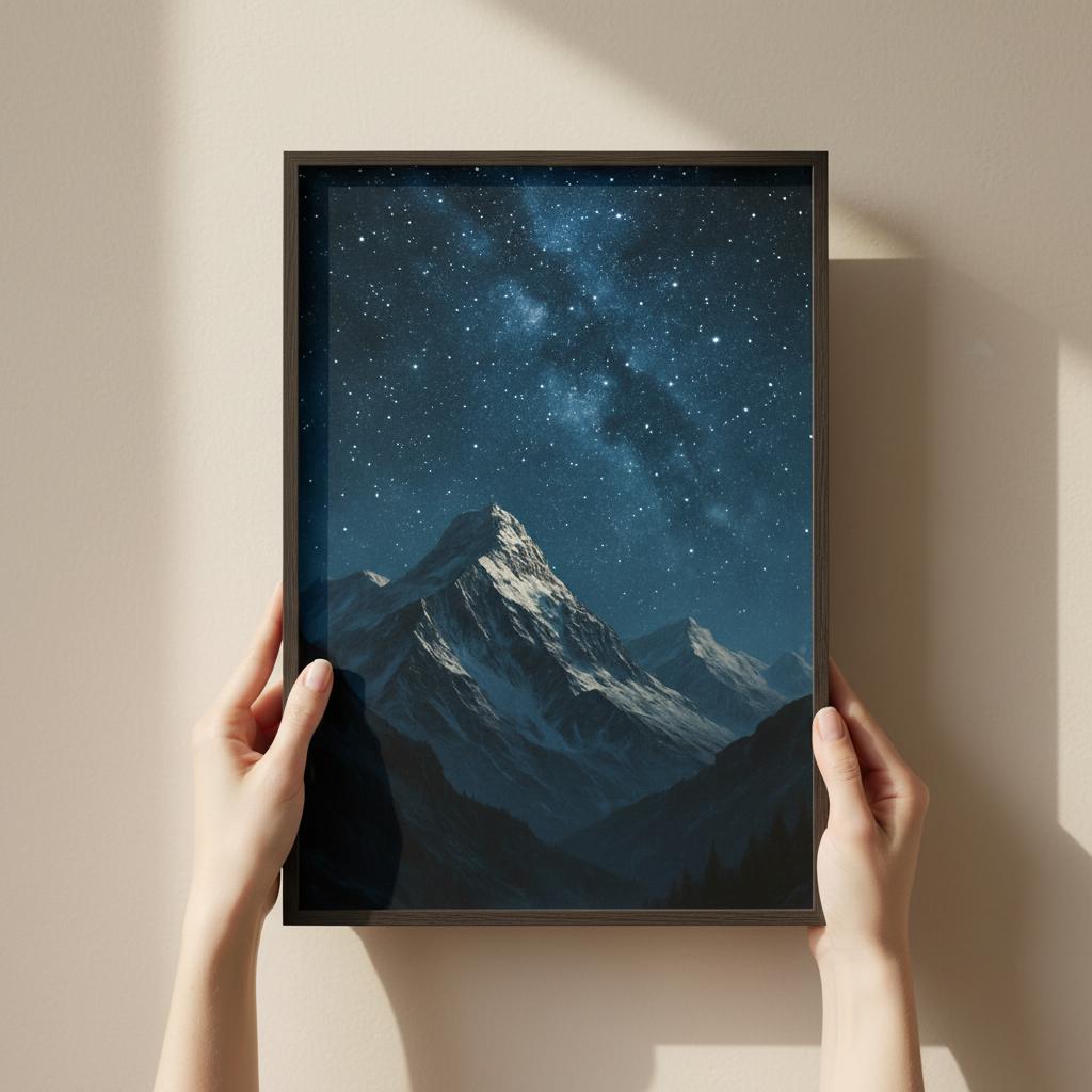 Poster clássico emoldurado em madeira com papel semibrilhante "Onde o Silêncio Brilha"